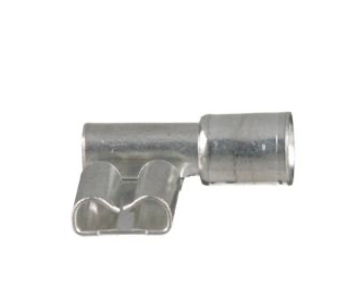 | Part Features | • Right angle design for use in limited space applications • Disconnect can be inserted and removed from the male tab without the use of tools for lower installed cost • Sleeved barrel helps to facilitate high mechanical and electrical performance when crimping • Barrel of terminal internally beveled to provide quick and easy wire insertion • Internal barrel serrations assure good wire contact and maximum tensile strength • Maximum recommended operating temperature 302°F (150°C) • UL and CSA rated up to 2000 V per UL 310, where applicable |